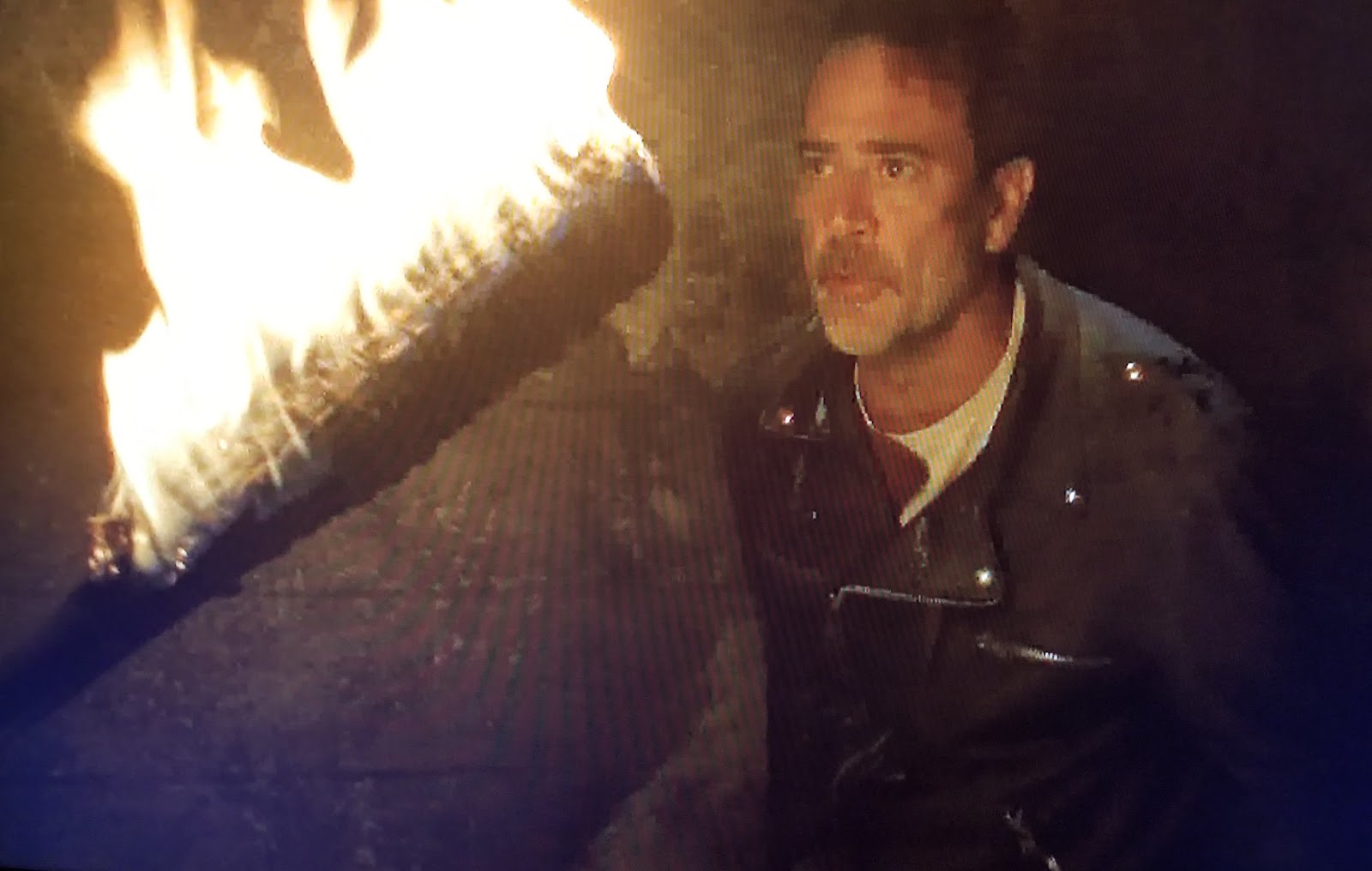 Speaking of weapons choices that don't quite make sense, let's back up for a moment now so I can get this Hilltop battle straight. Simon arbitrarily decided that the mission went from 'wound them' to 'destroy them' but then only showed up with guts weapons? No guns in their trucks at all as backup? You guys seriously brought arrows to a machine gun fight and thought you could divide and conquer? Sure, I guess the potential Hilltop zombies could do some damage, but the odds of Hilltop zombies completely destroying the community are slim...which is why Negan's plan was to punish Hilltop only. Simon, you're an idiot.
